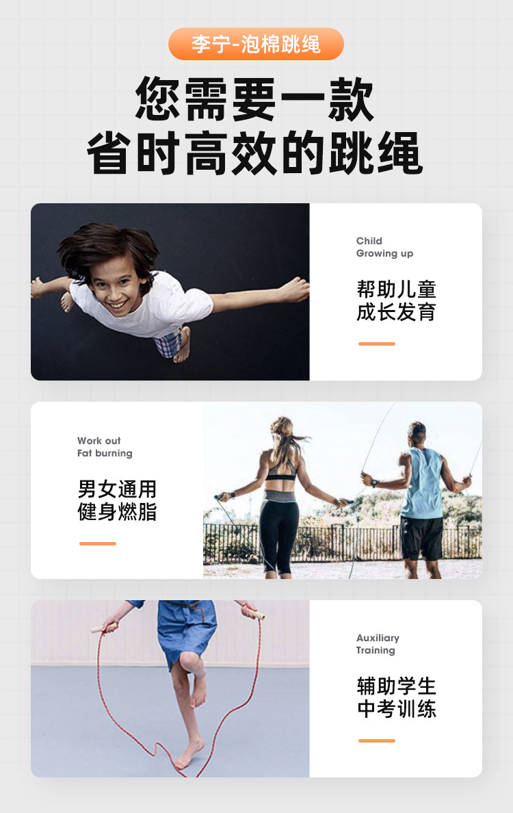 跳绳健身运动中考防滑泡棉训练专用绳