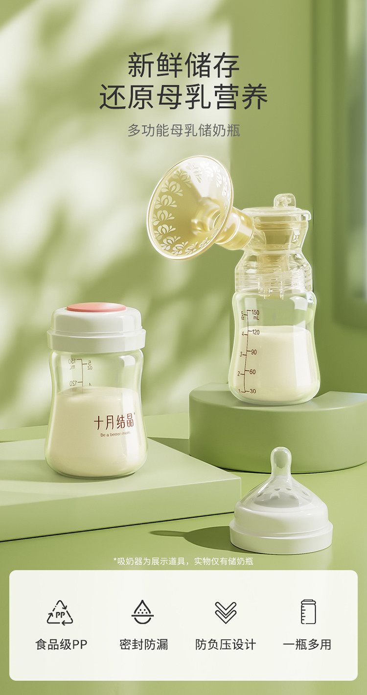 【3个储奶瓶】母乳保鲜瓶宽口径多功能存奶直连吸奶器+纸巾