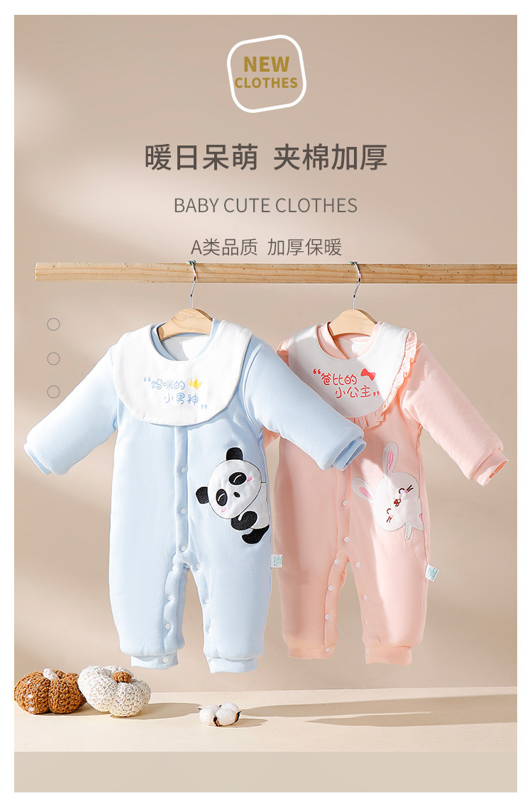 新生婴儿男童宝宝婴幼连体衣男童外出哈衣爬服夹棉加厚