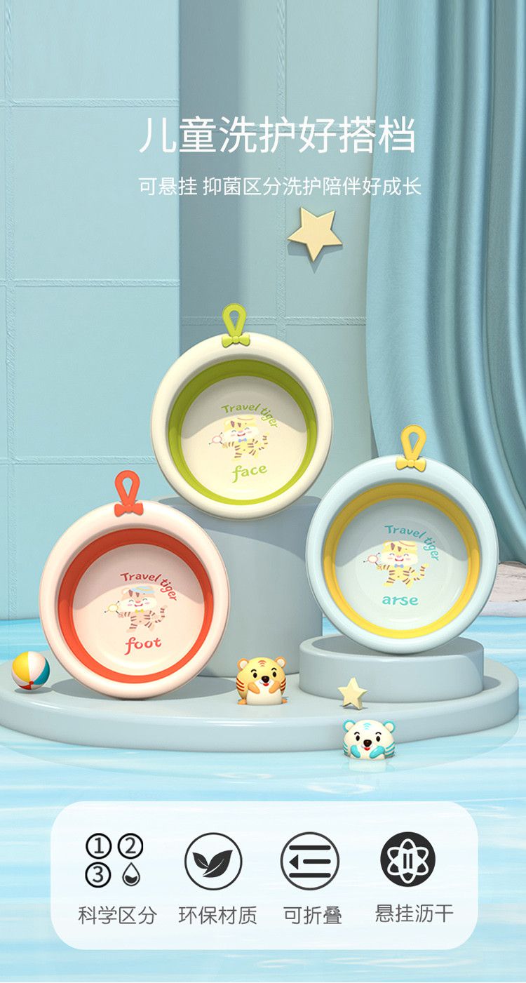 婴儿脸盆儿童用品初生新生宝宝家用面盆小盆子三件套洗屁股可折叠