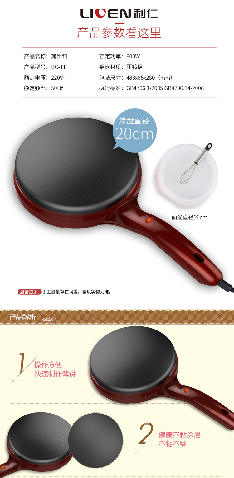 | 生产/经销/进口厂家: | 廊坊开发区利仁电器有限公司 | 产品尺寸(长*宽*高cm): | 烤盘直径20CM |