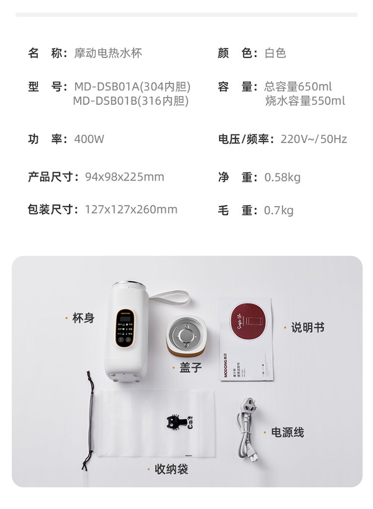 【不锈钢内胆】便携式烧水壶烧水杯旅行出差电热水杯电热水壶