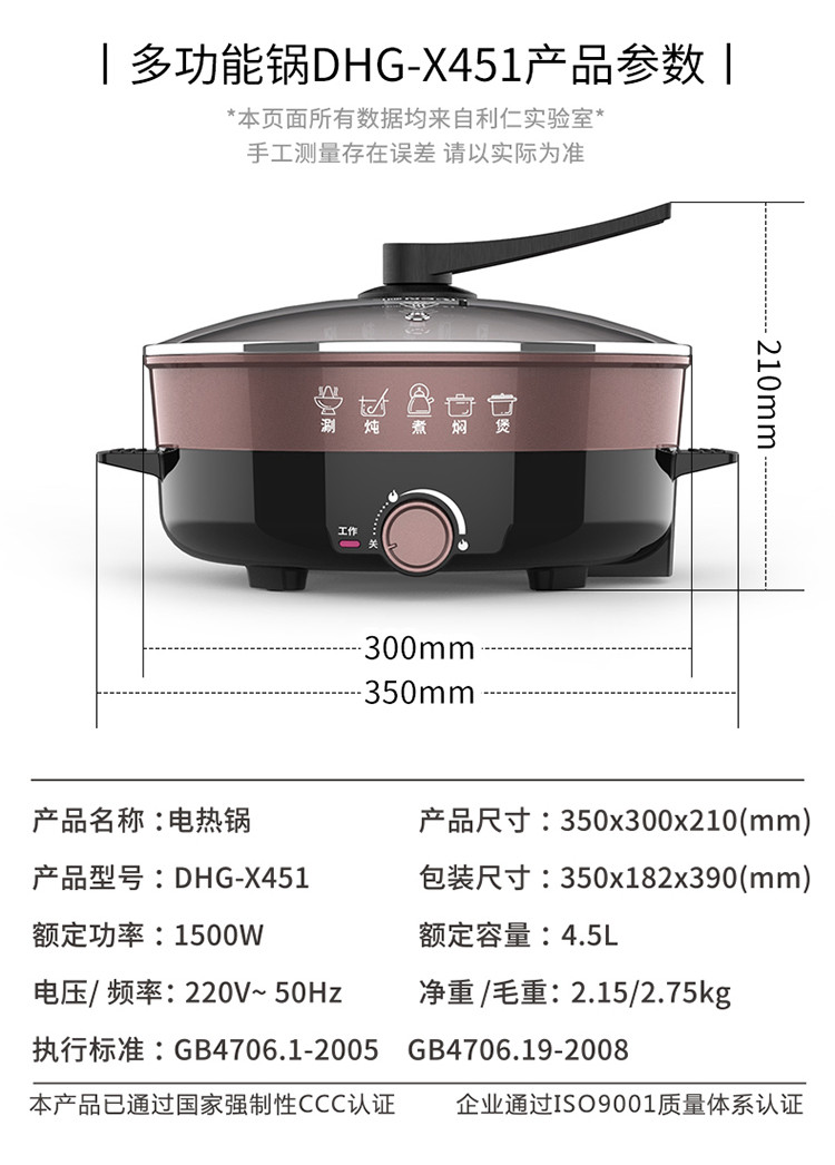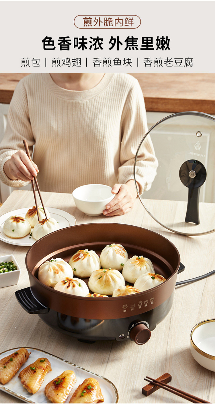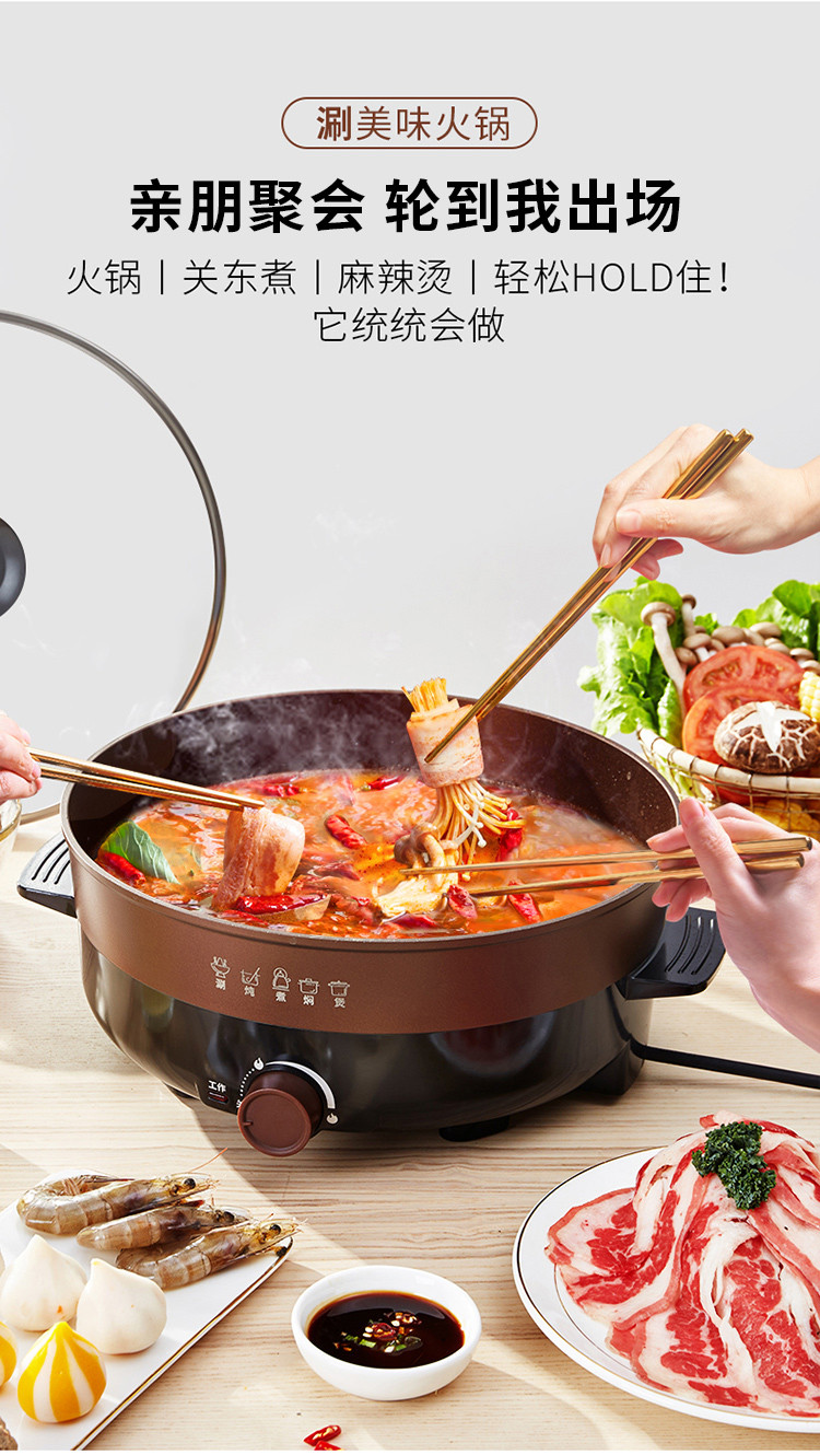 4.5L家用电火锅多功能电锅电煮锅电热锅电煎锅烤肉锅厨房电器
