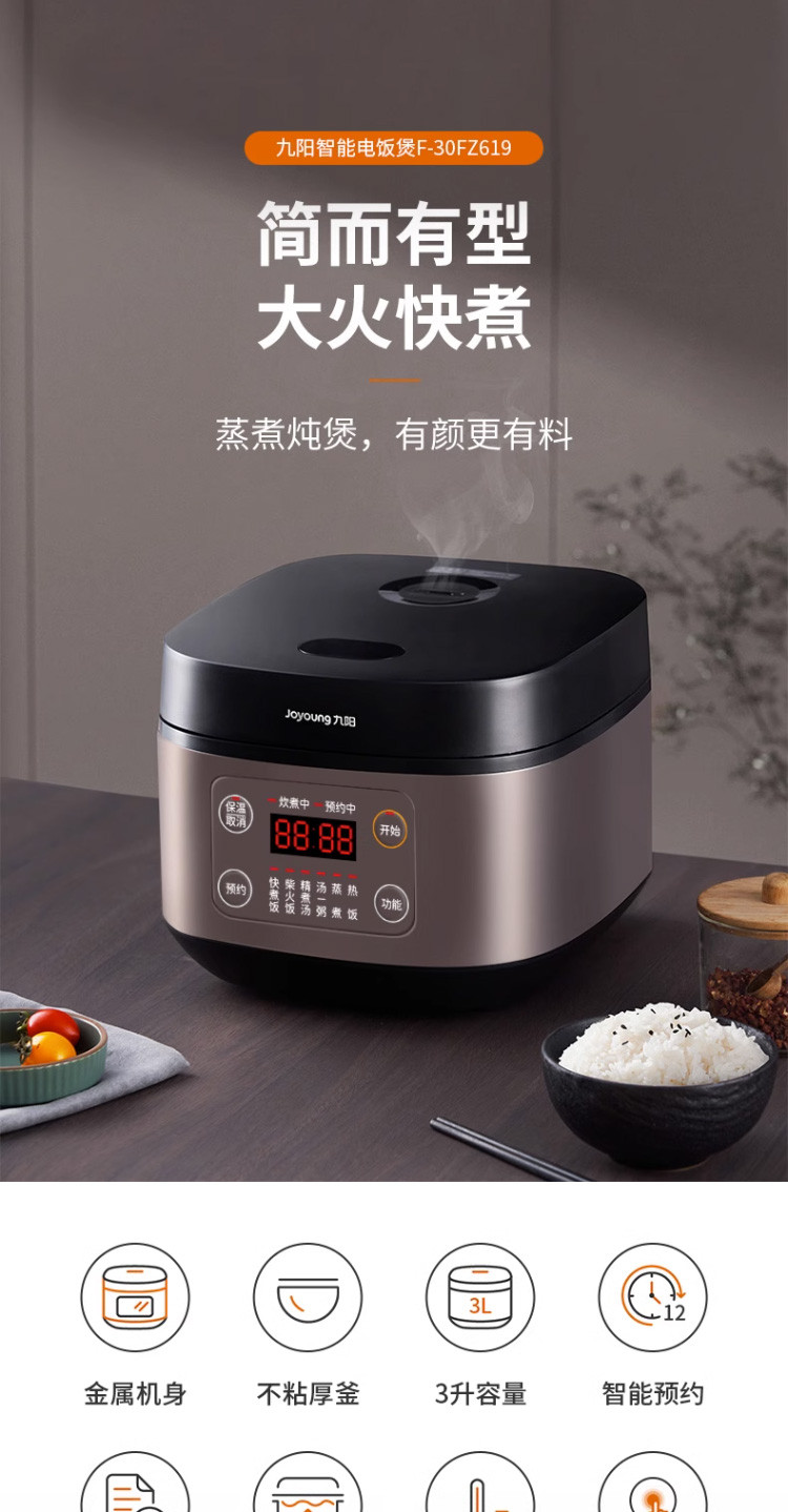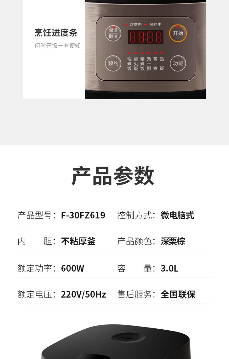 【不沾厚釜 柴火饭】3L电饭煲电饭锅家用多功能智能预约柴火饭