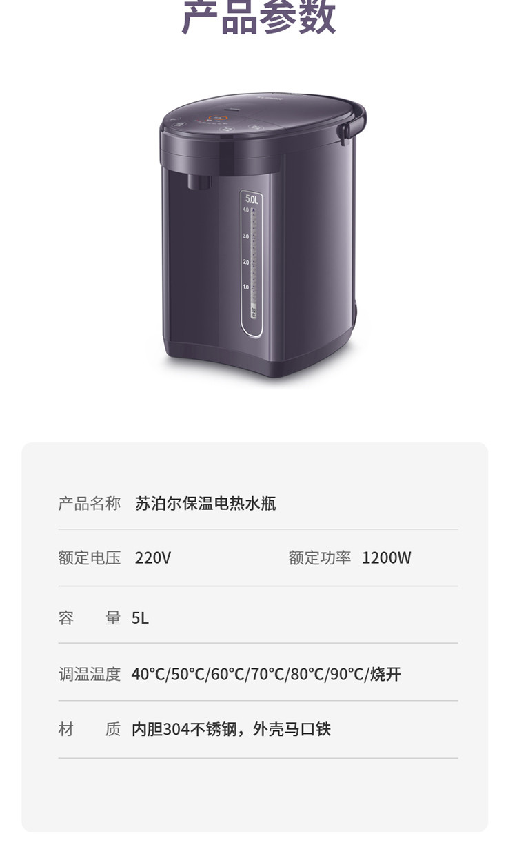 | 主分类: | 电热水壶 | 具体容量: | 5L |