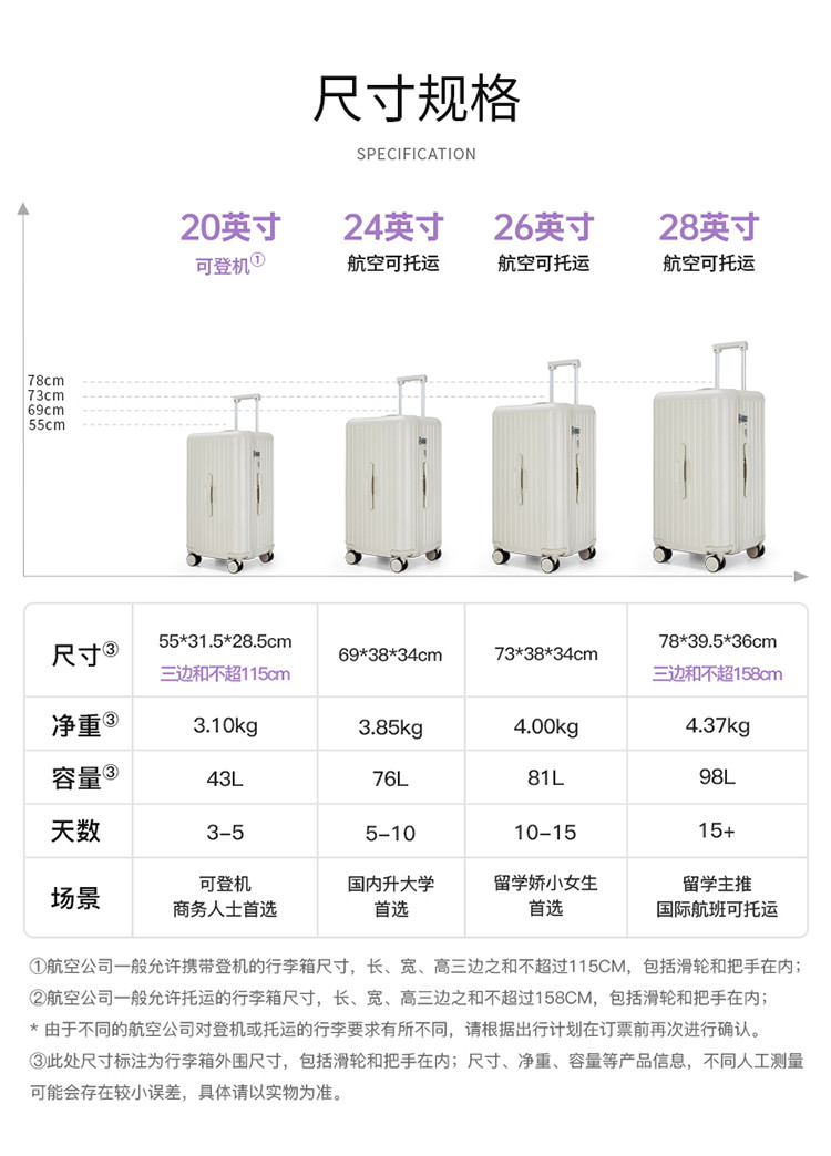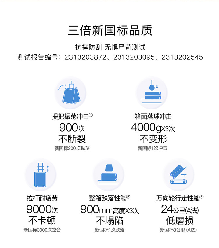 | 锁类型: | TSA密码锁 | 执行标准: | Q/KLY 05-2024《旅行箱包》 |