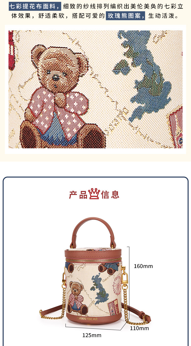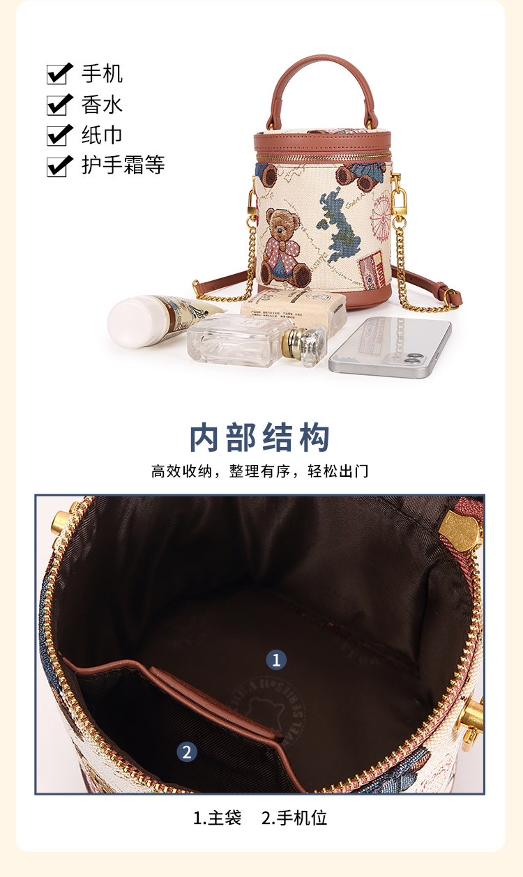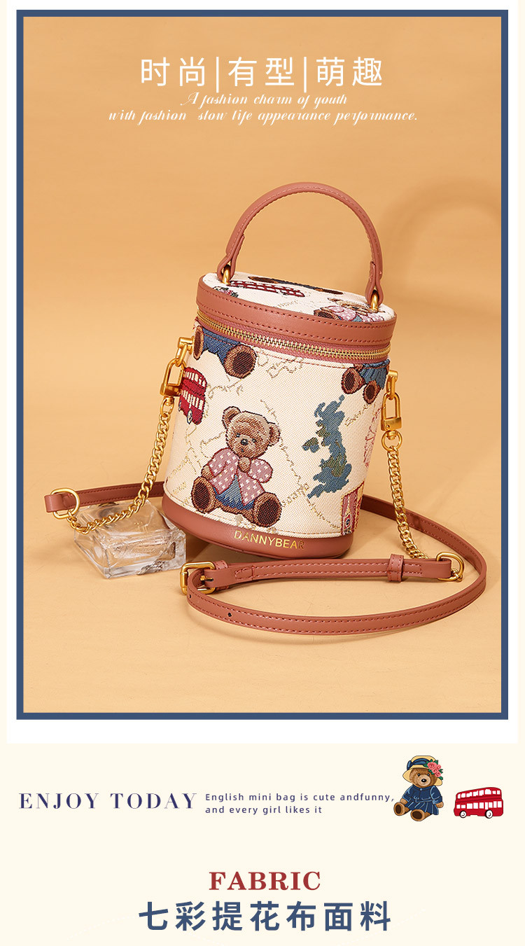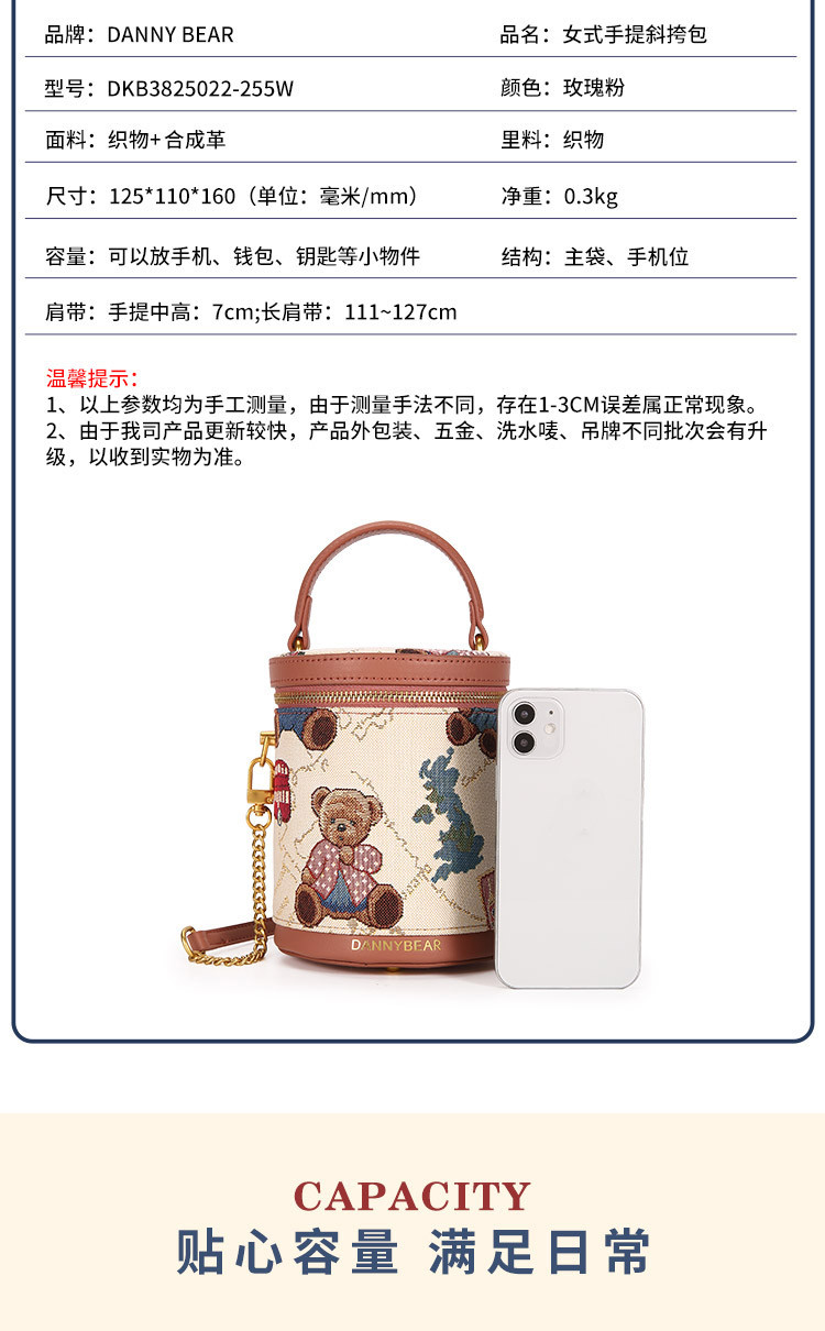 丹尼熊女式手提斜挎包水桶包通勤日常可爱女包包5022
