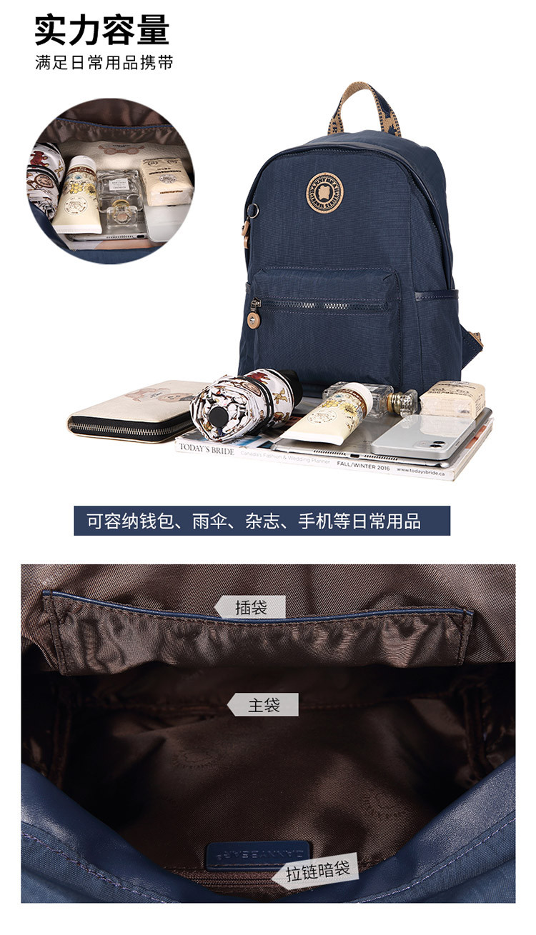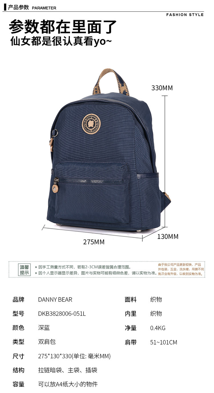 丹尼熊轻便背包双肩包男女书包出游旅行休闲洗水布包8006