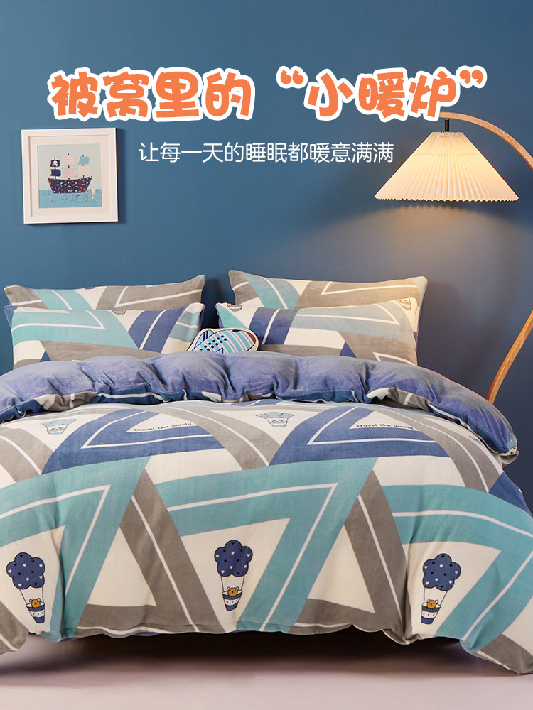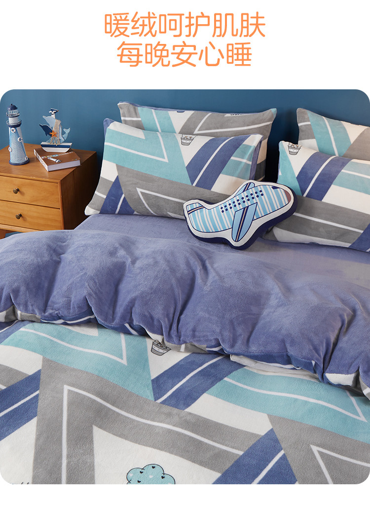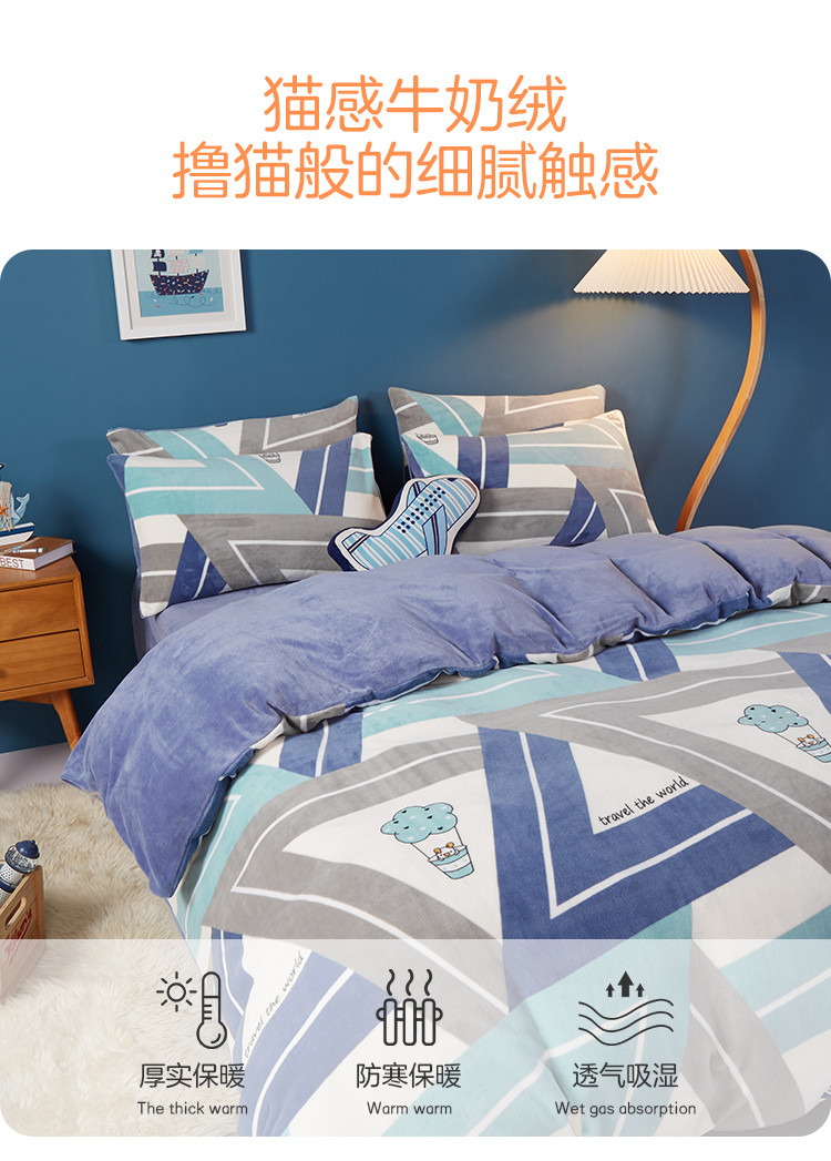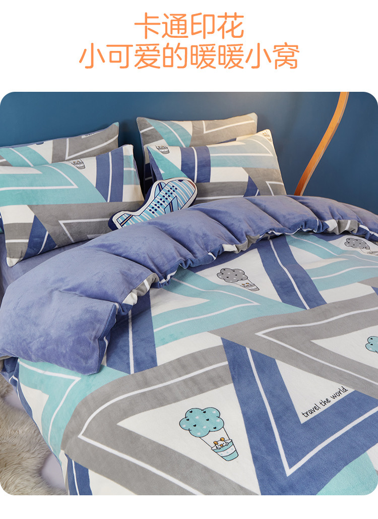 - 儿童绣花卡通牛奶绒套件加绒被套加厚双面绒床上用品
