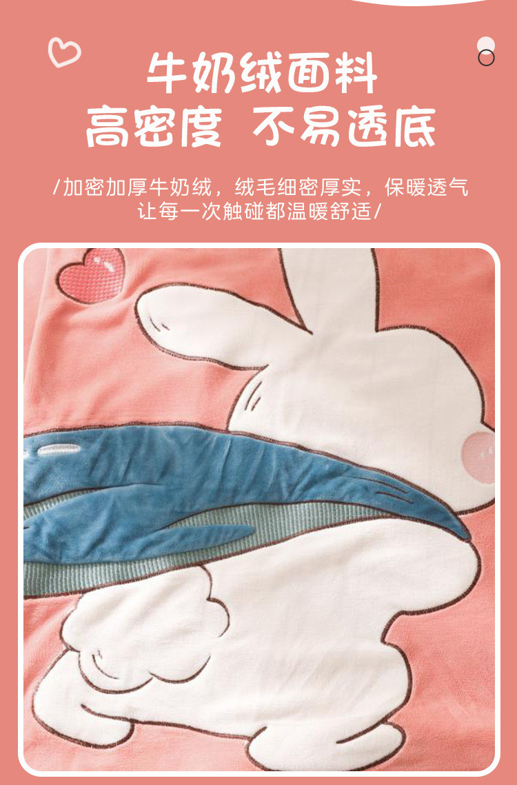 - 儿童绣花卡通牛奶绒套件加绒被套加厚双面绒床上用品